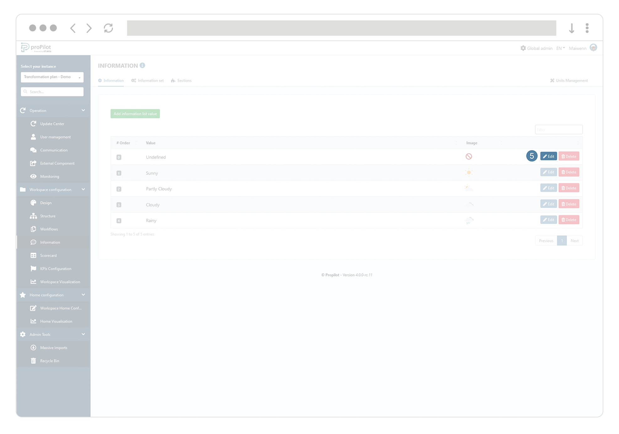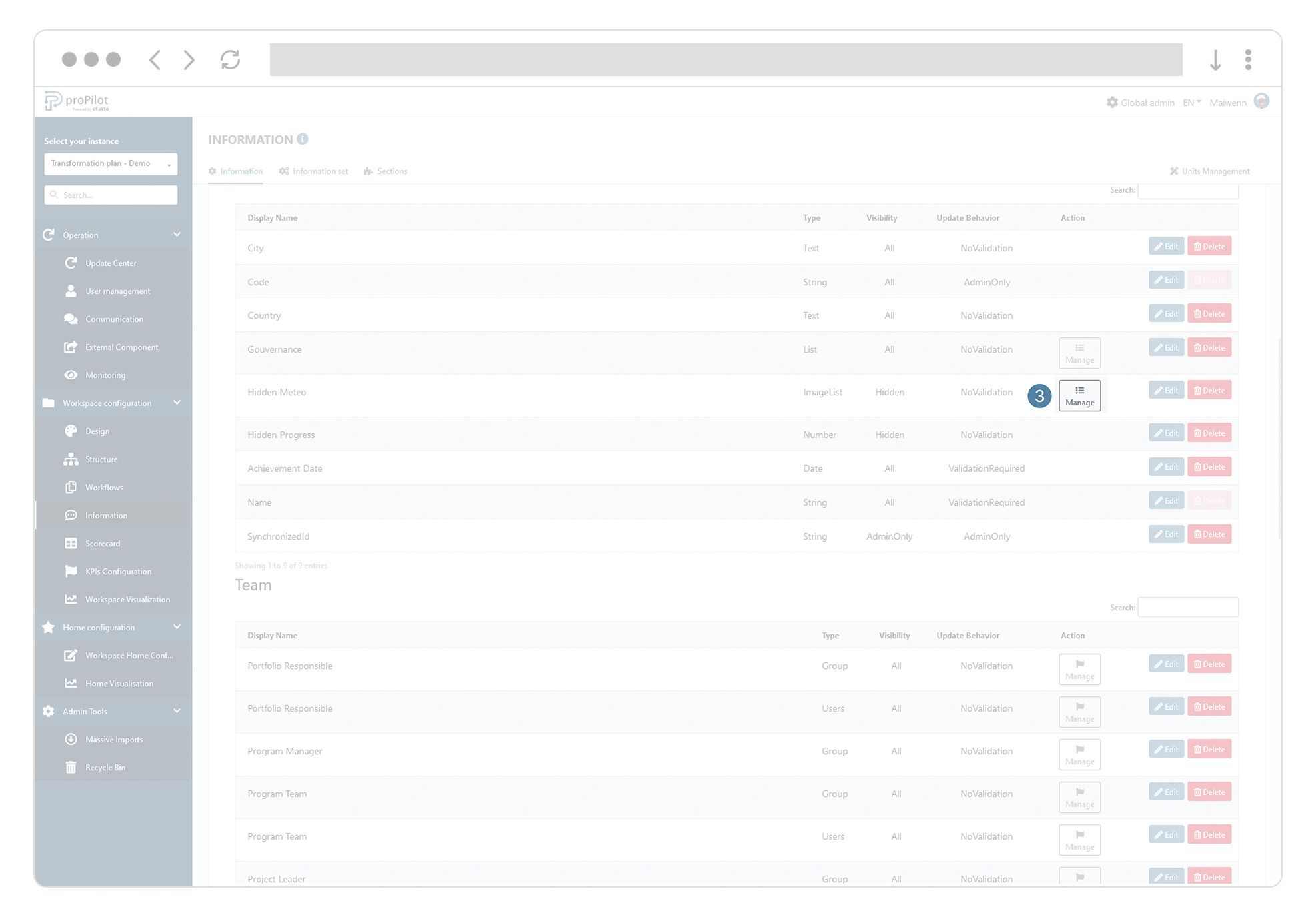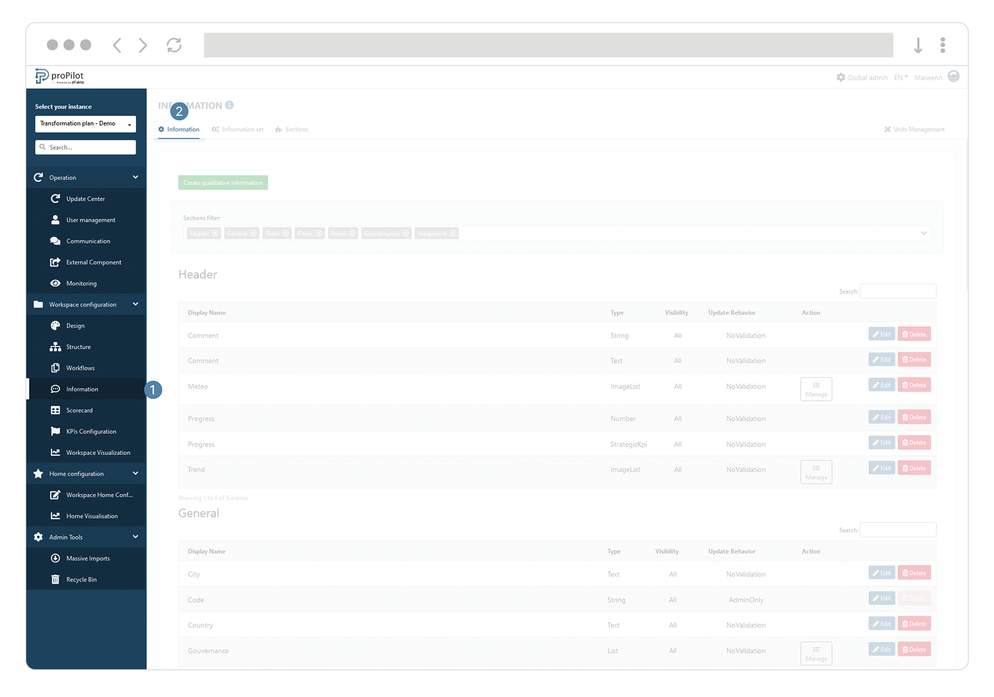 Click on the "Information" tab, this module allows you to manage the different information and associated settings.