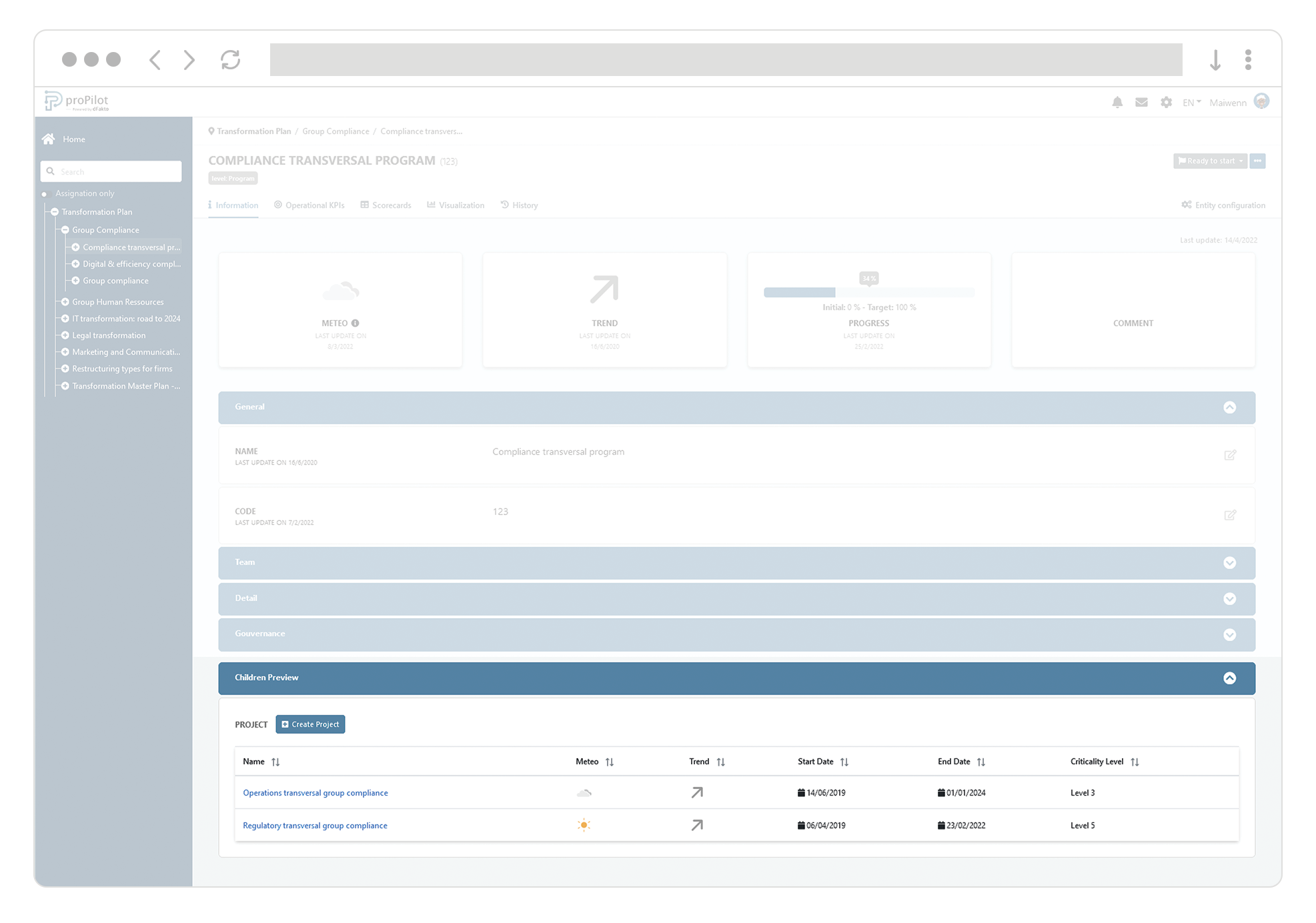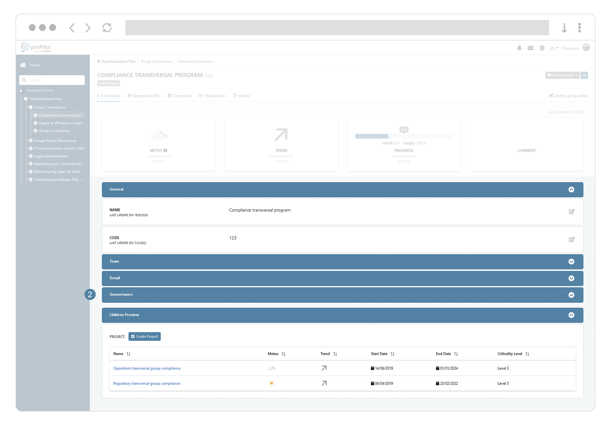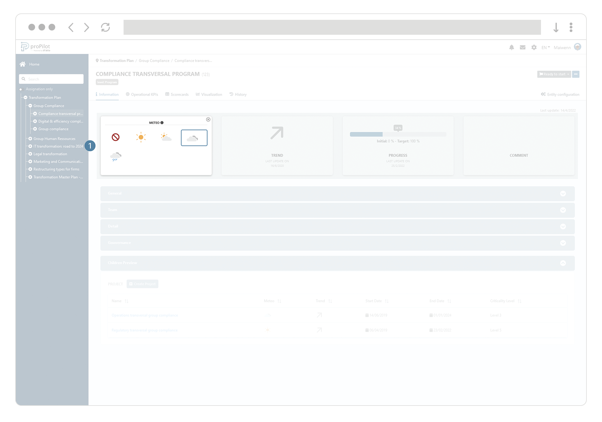 Find out how to update your plan. In the "information" tab you can collect and visualize qualitative information. They allow you to put the human element and the information at the heart of your monitoring through data. Illustrate your successes or point out your difficulties.