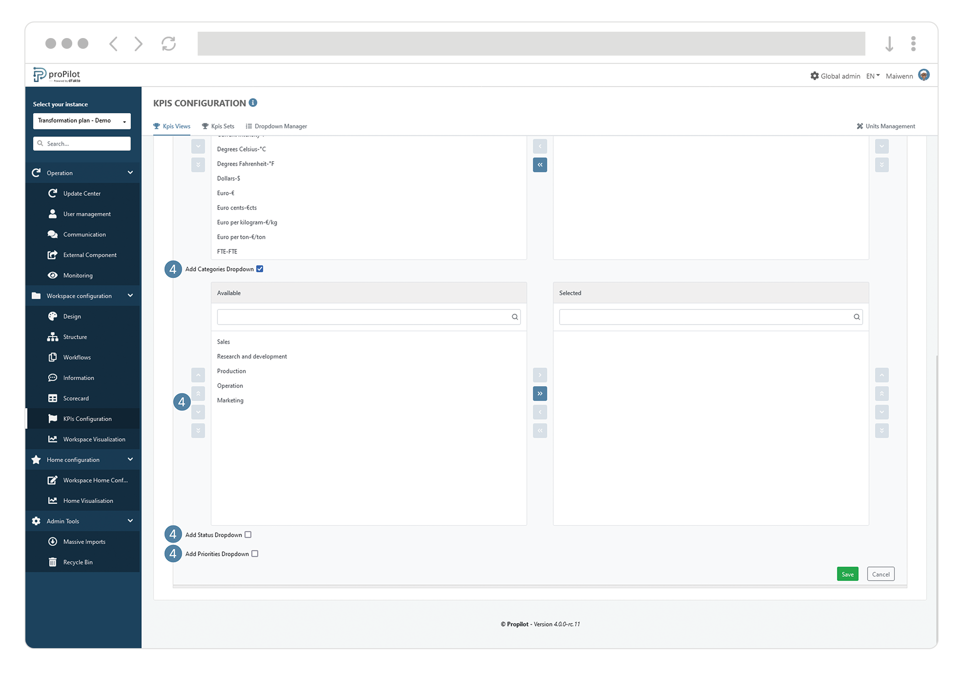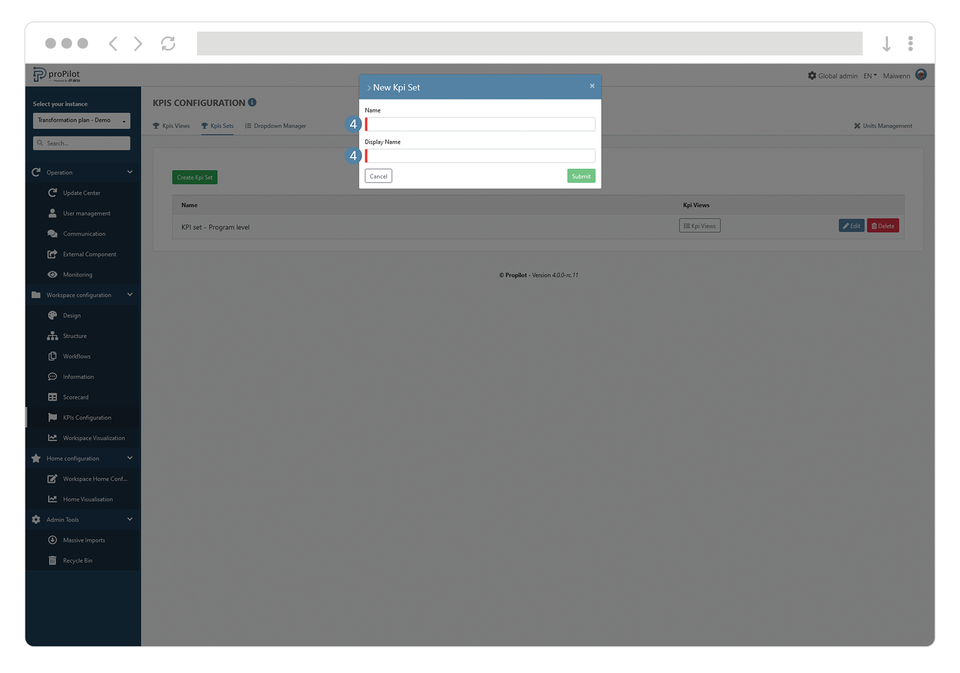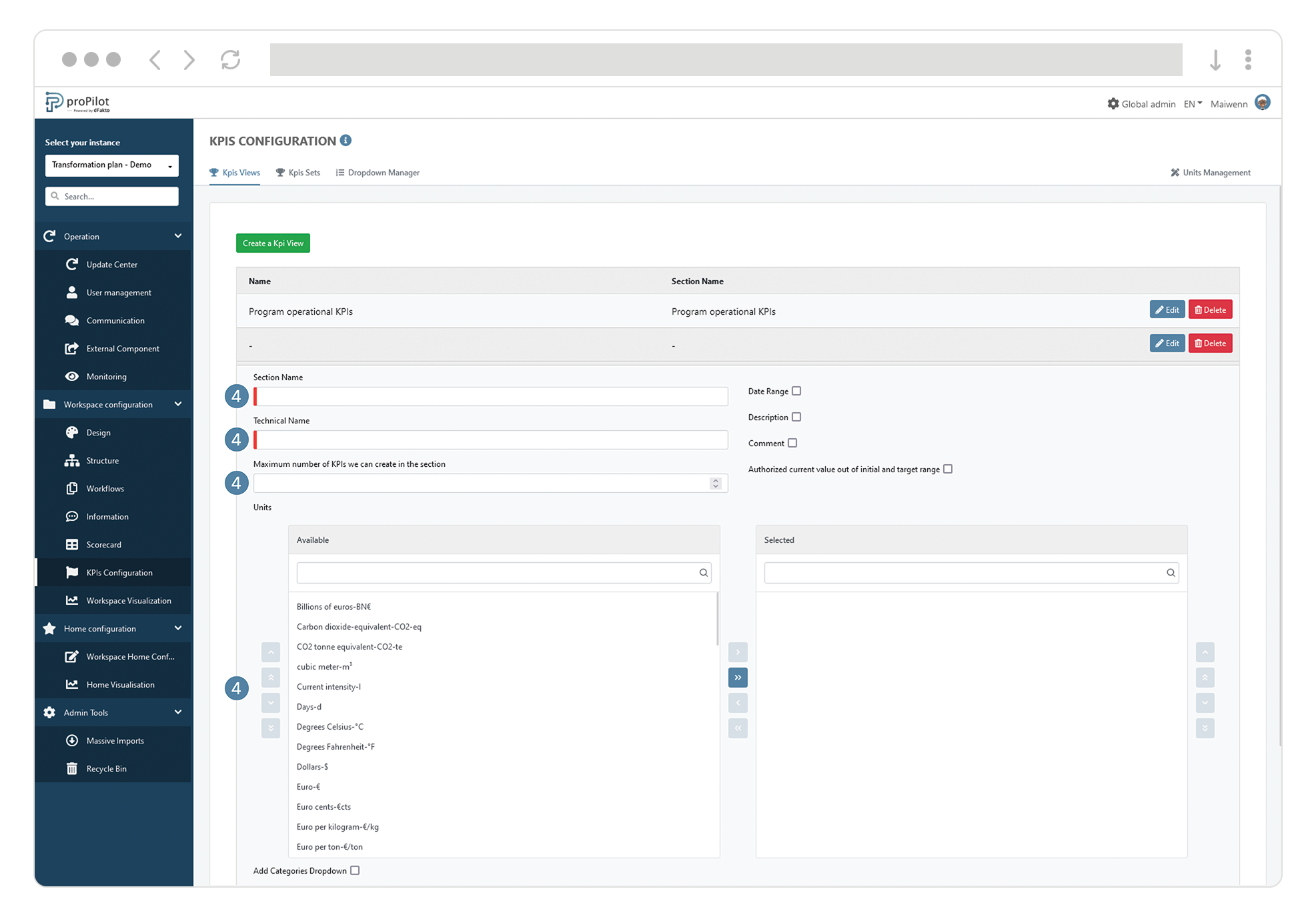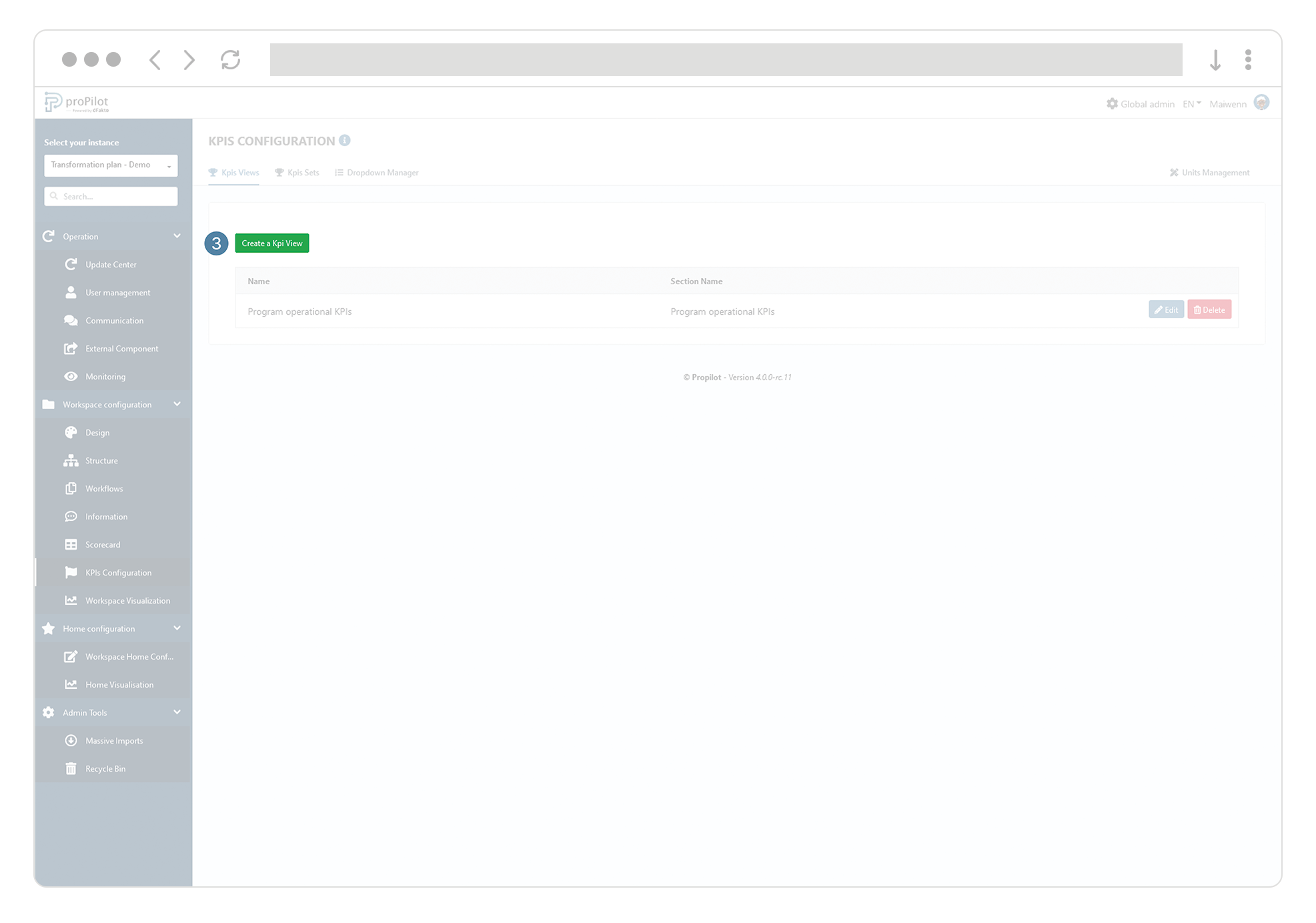 In the left menu, select "workspace configuration" and then "KPIs configuration".