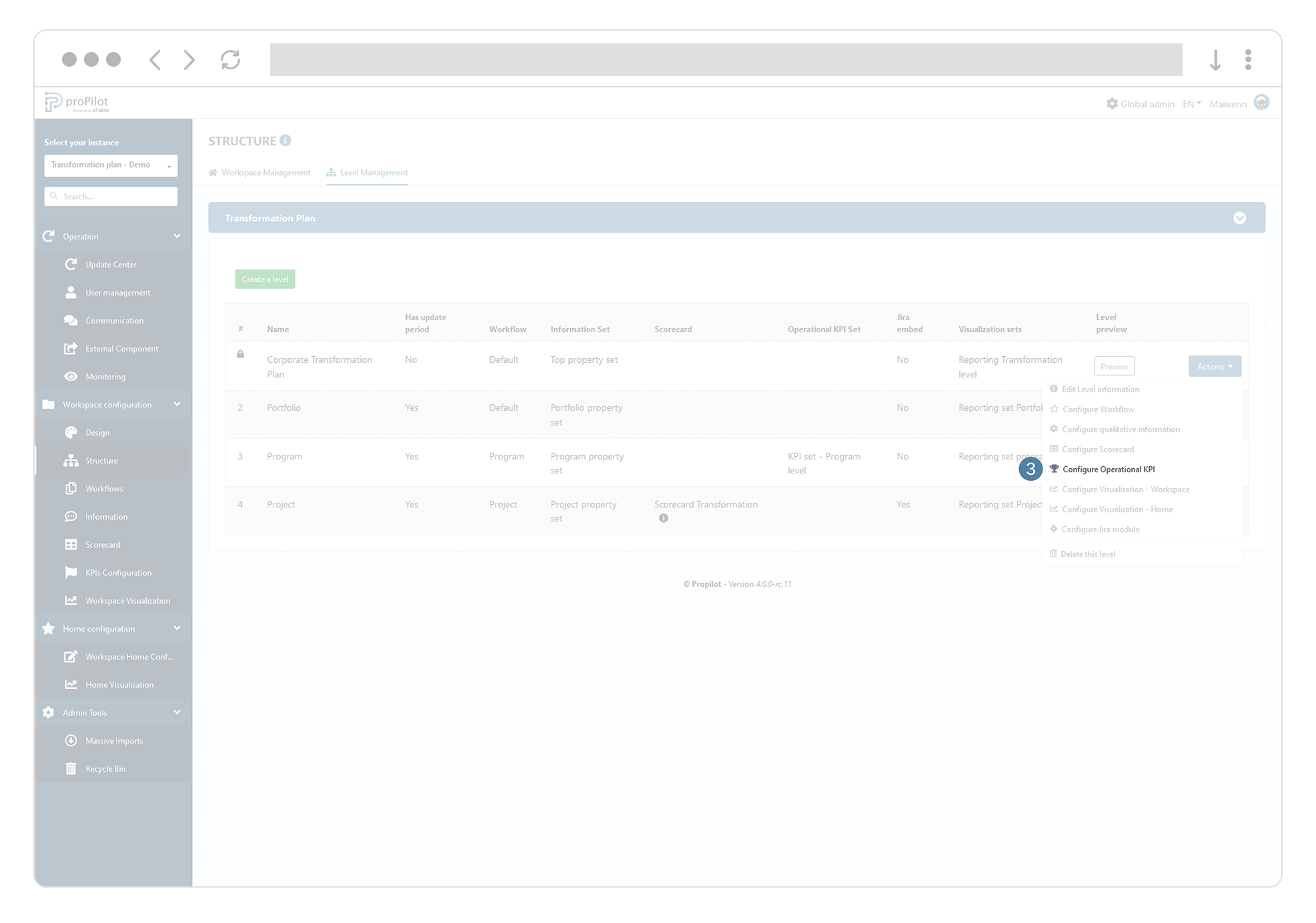 Click on the "actions" button of the level you wish to update and select "Configure Operational KPI".