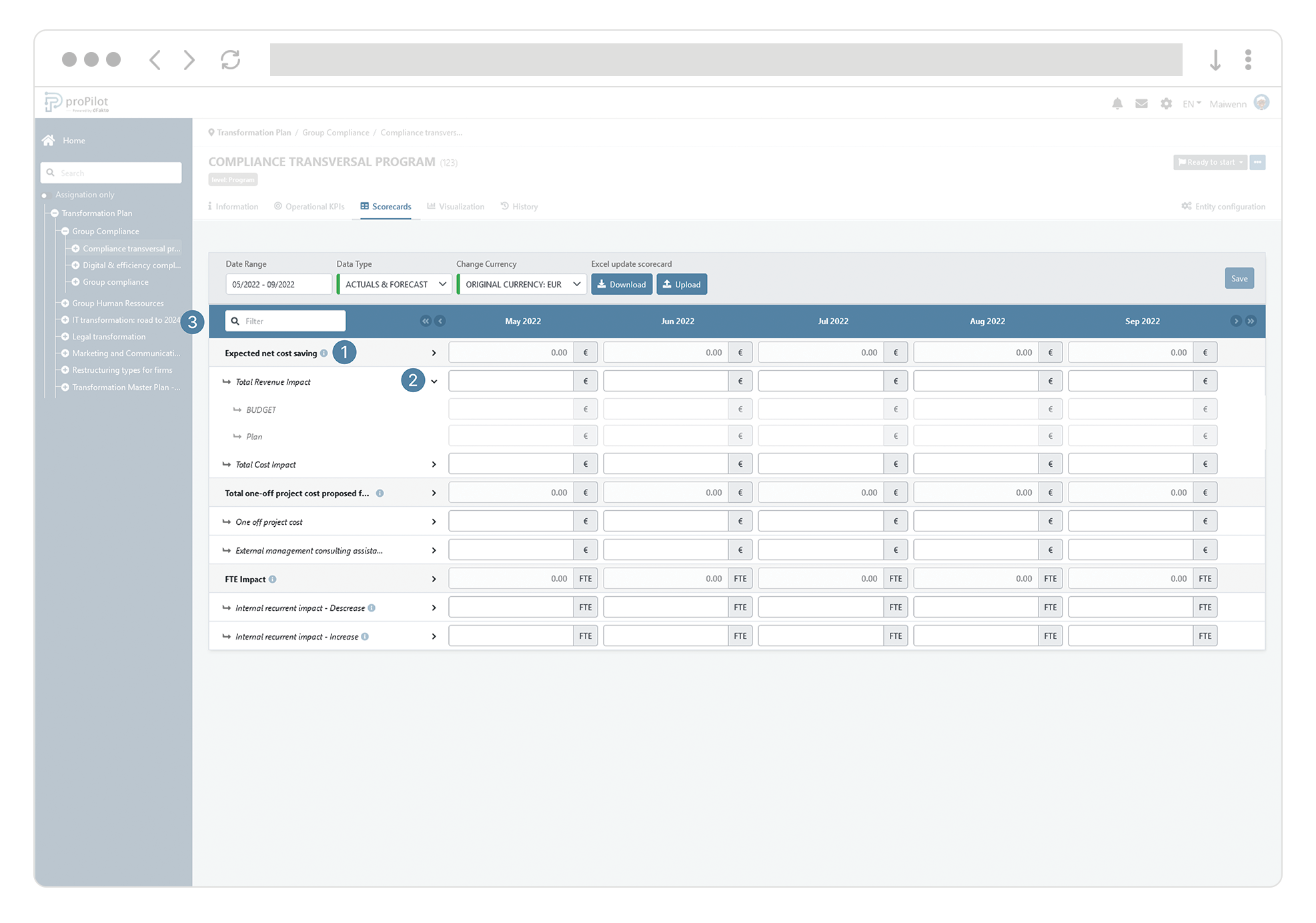 In each entity, you can collect and visualize quantitative information thanks to a “scorecard”.