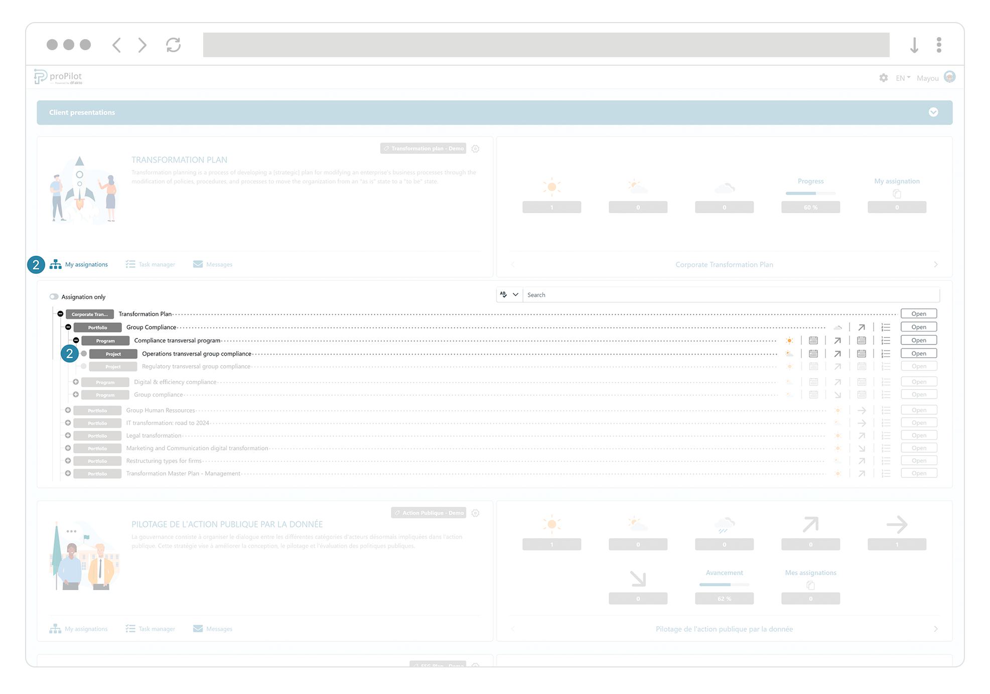 To assign a user to their field of responsibility and/or role, you have two options: either use the administration area, or navigate directly in the plan through the user interface.