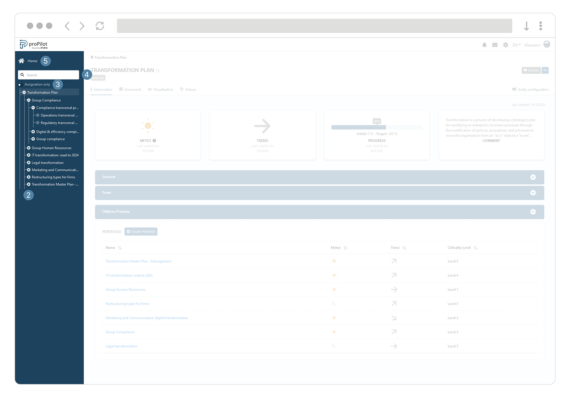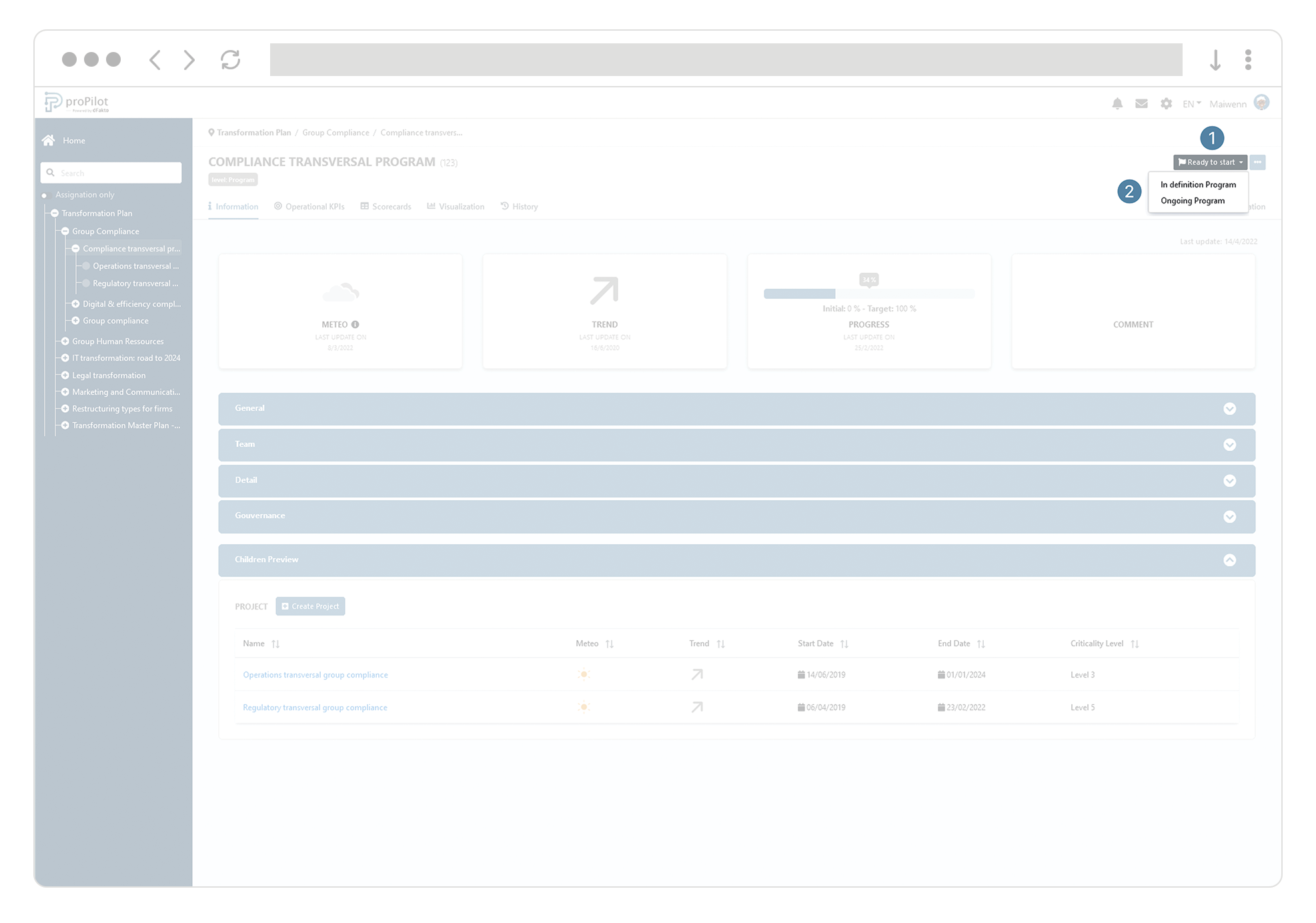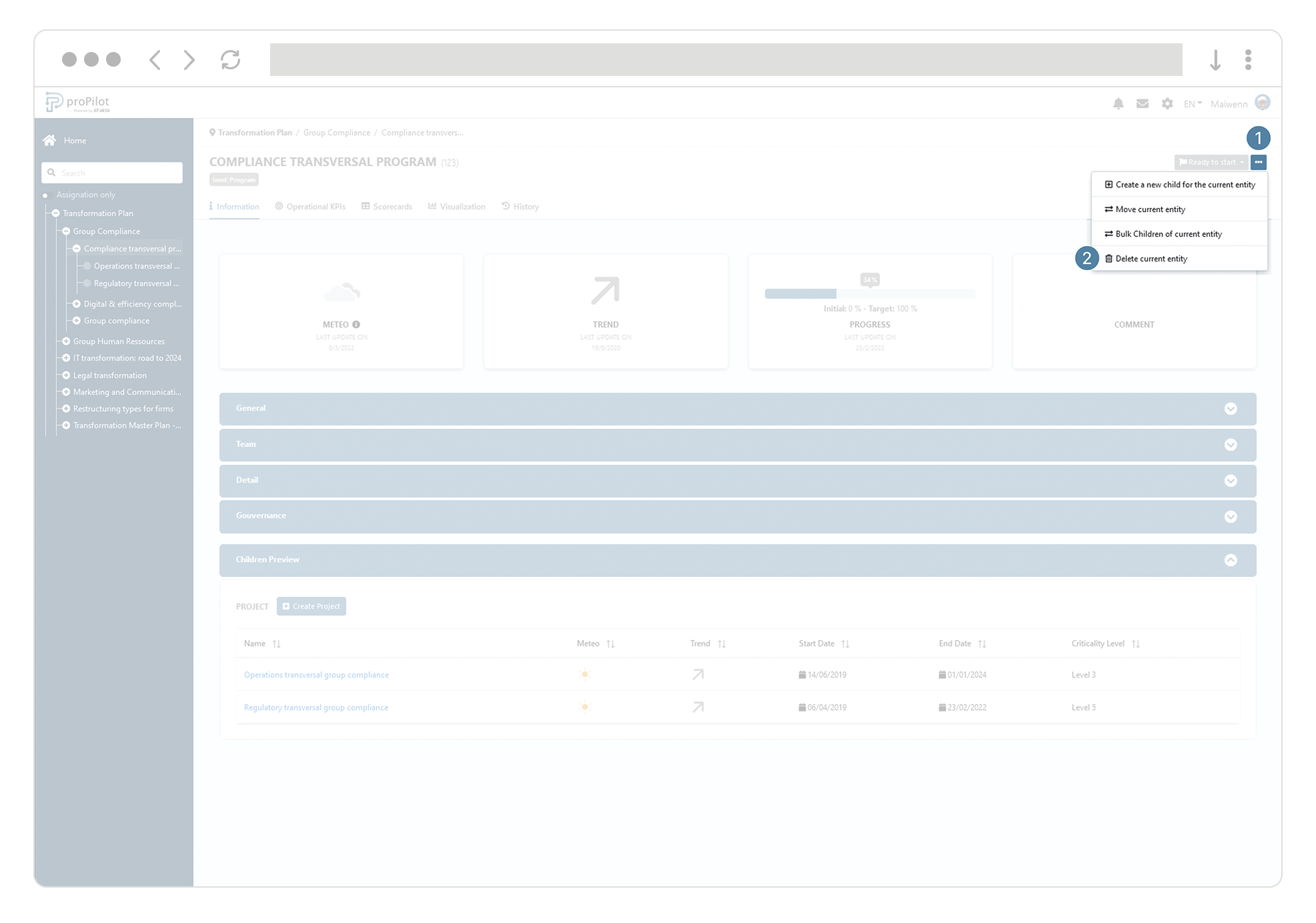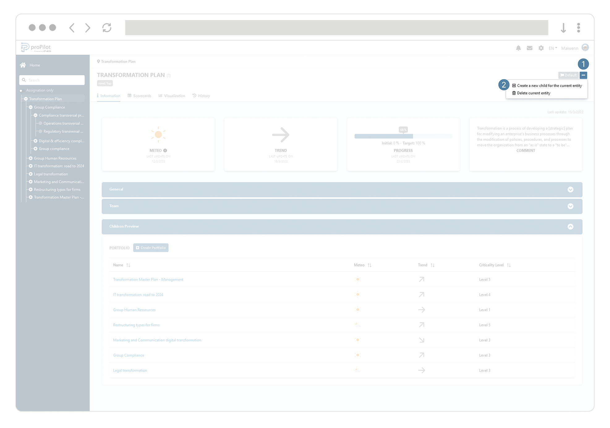 On the right side of your entity’s screen, you can modify the maturity according to the defined workflow.