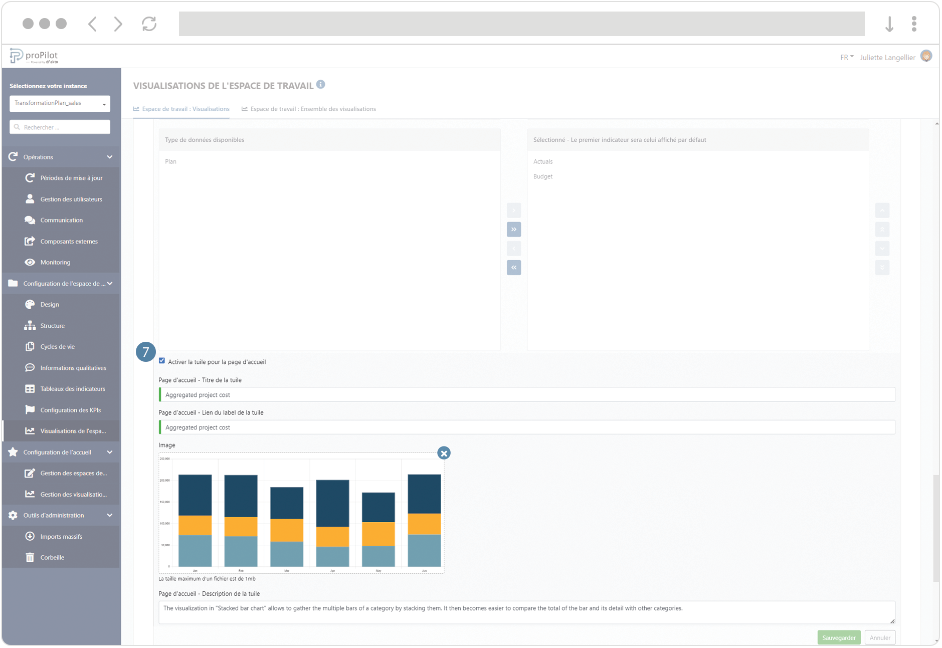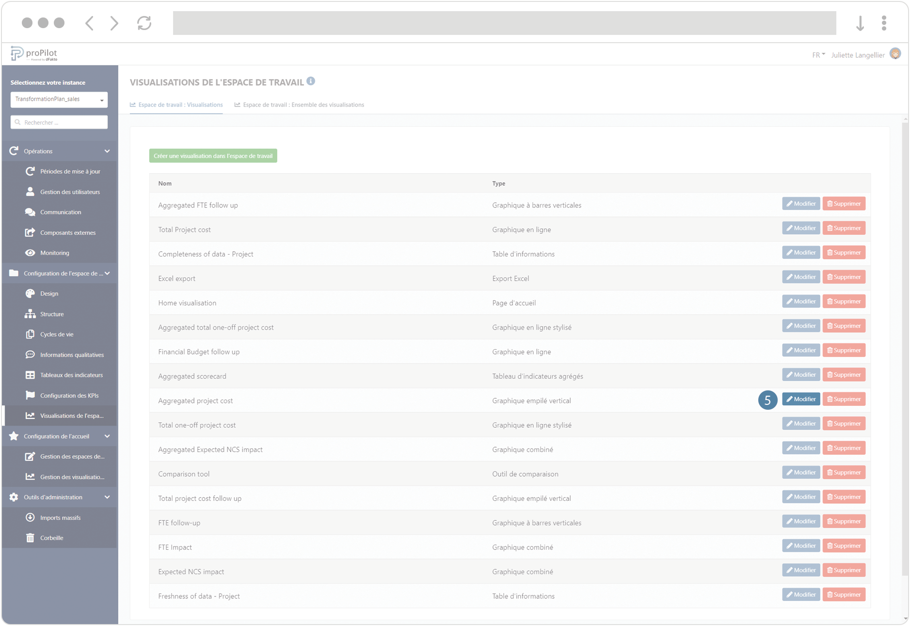 Dans le menu de gauche, sélectionnez “configuration de l'espace de travail” puis “visualisations de l’espace de travail”.