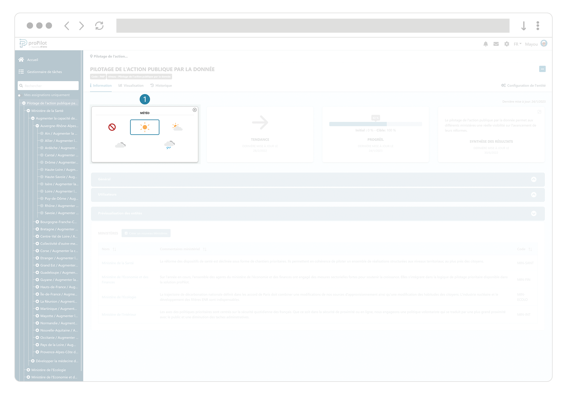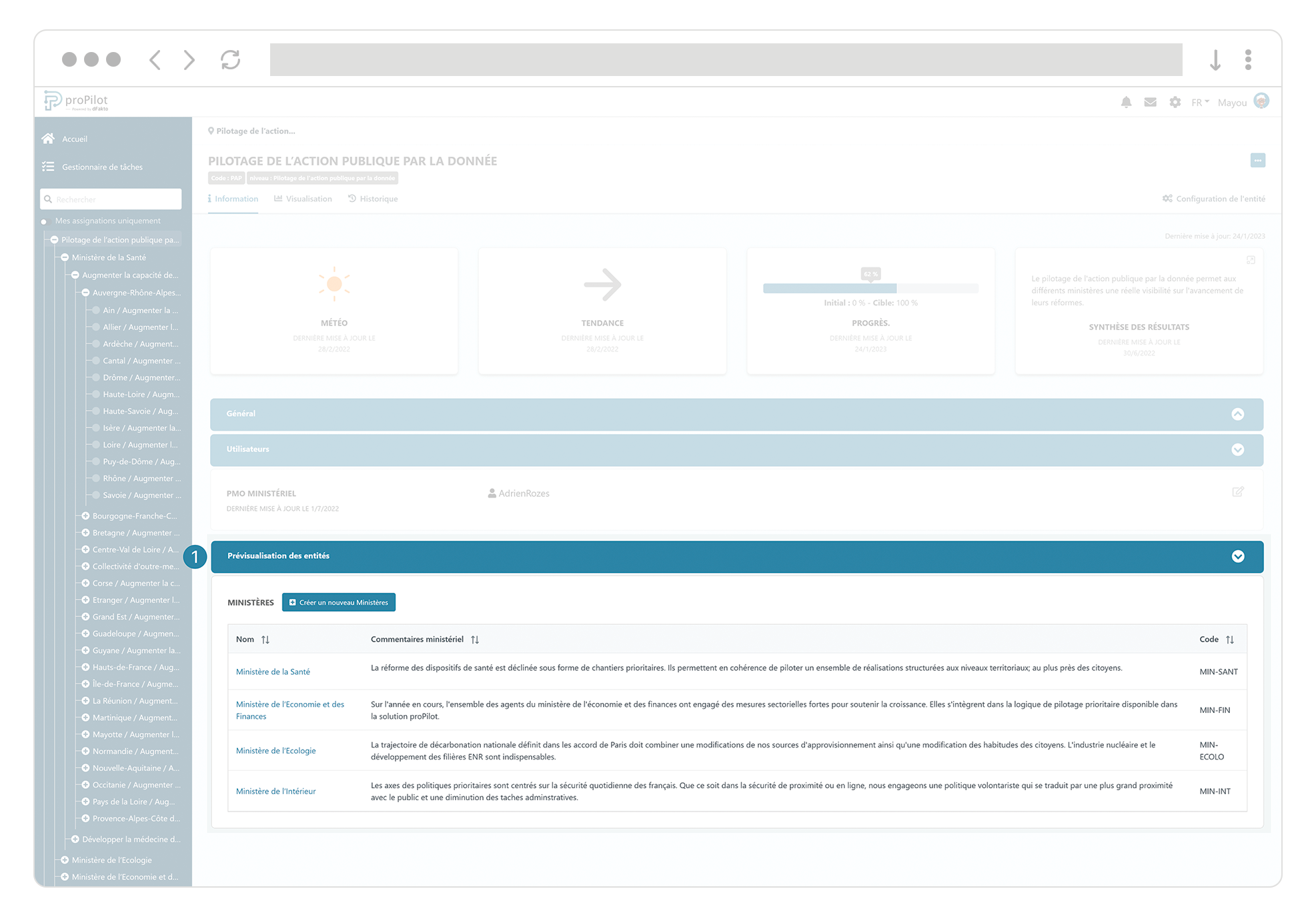 Découvrez comment mettre à jour votre plan. Dans l’onglet “information” vous pouvez collecter et visualiser les informations qualitatives. Elles retranscrivent, permettent de positionner l’humain et les informations au cœur de votre suivi par la donnée. Illustrez vos succès ou signalez vos difficultés.