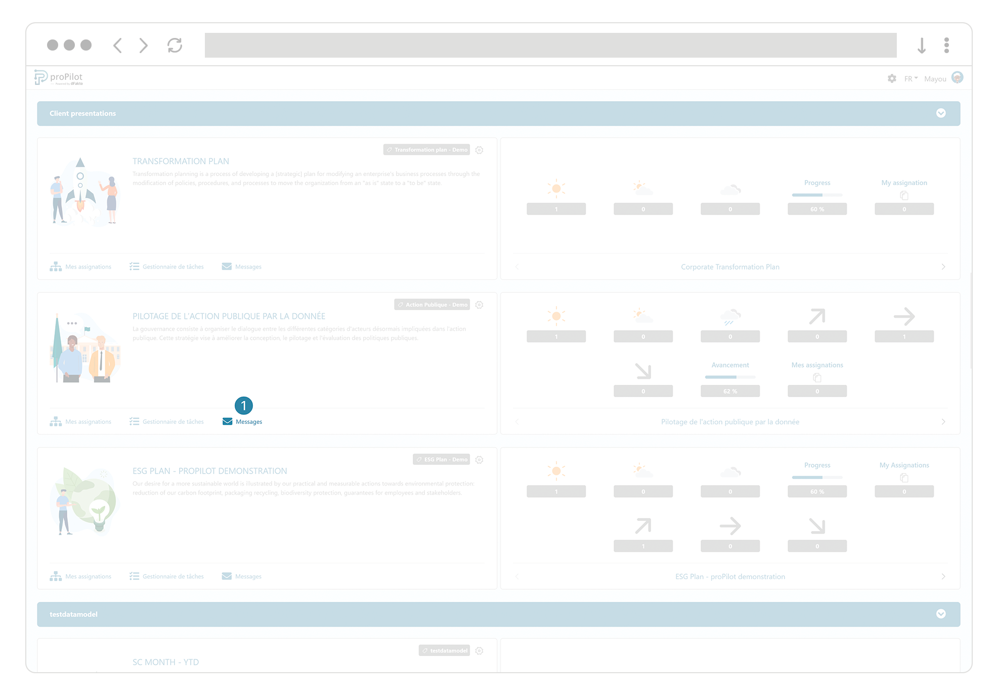 Les messages permettent à votre organisation de communiquer avec vous sur les dernières actualités importantes en lien avec proPilot et les informations que vous y renseignez.