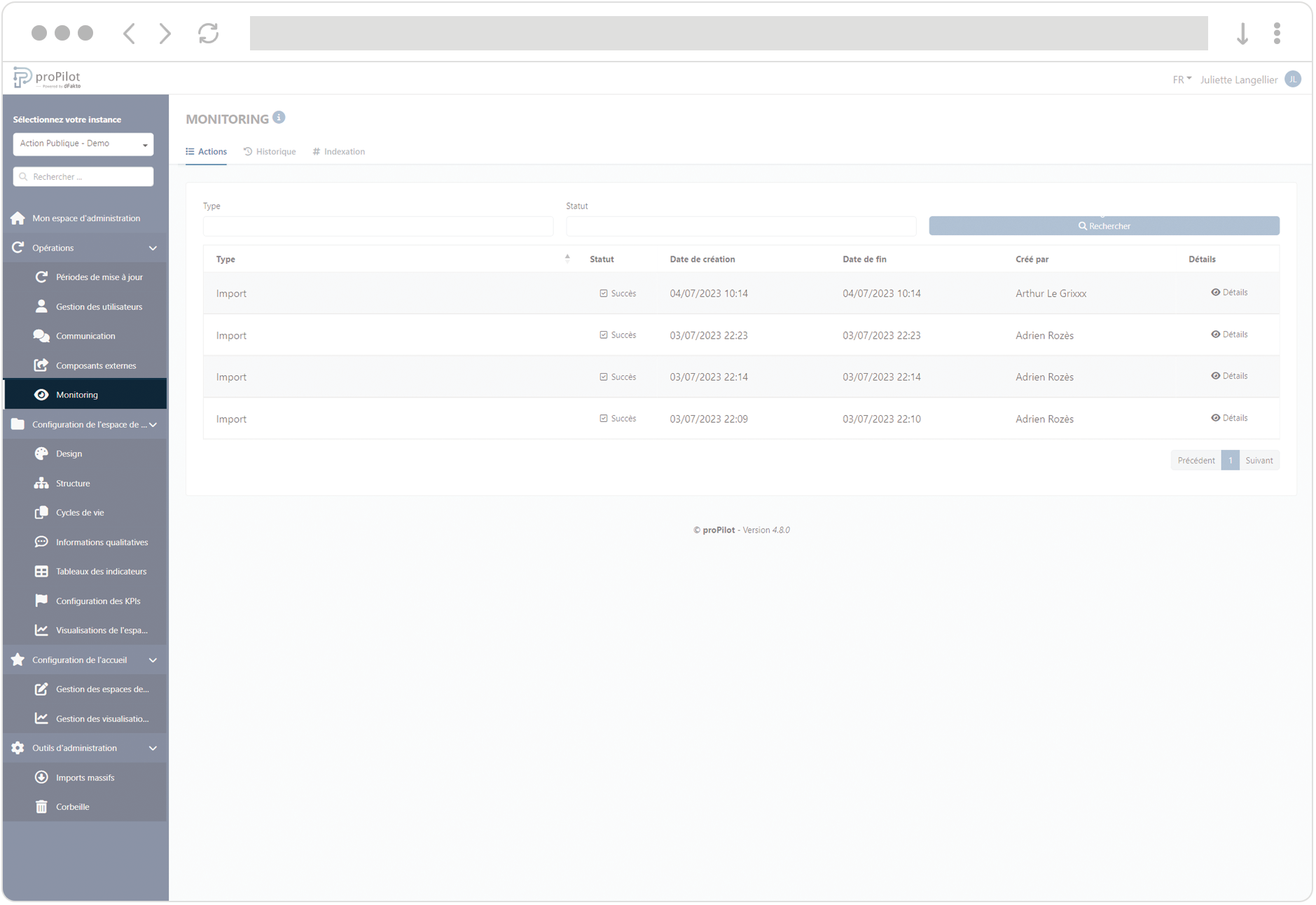 Pour suivre les différentes actions rendez-vous dans le menu “Monitoring” et sélectionnez l’onglet “Actions”.