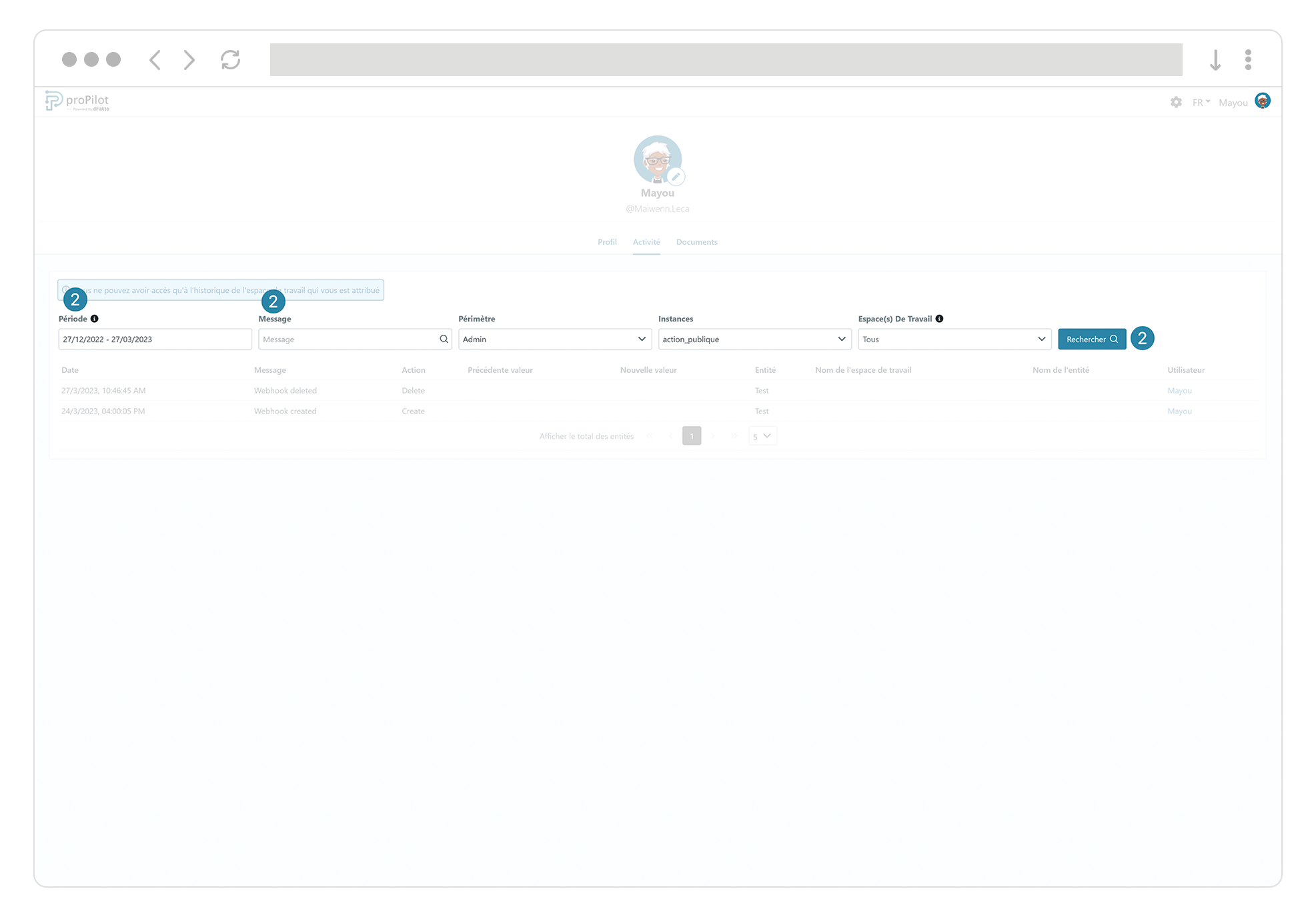 Affichez votre historique Votre historique personnel comprend l’ensemble des actions et modifications ayant été réalisées par votre compte utilisateurs.