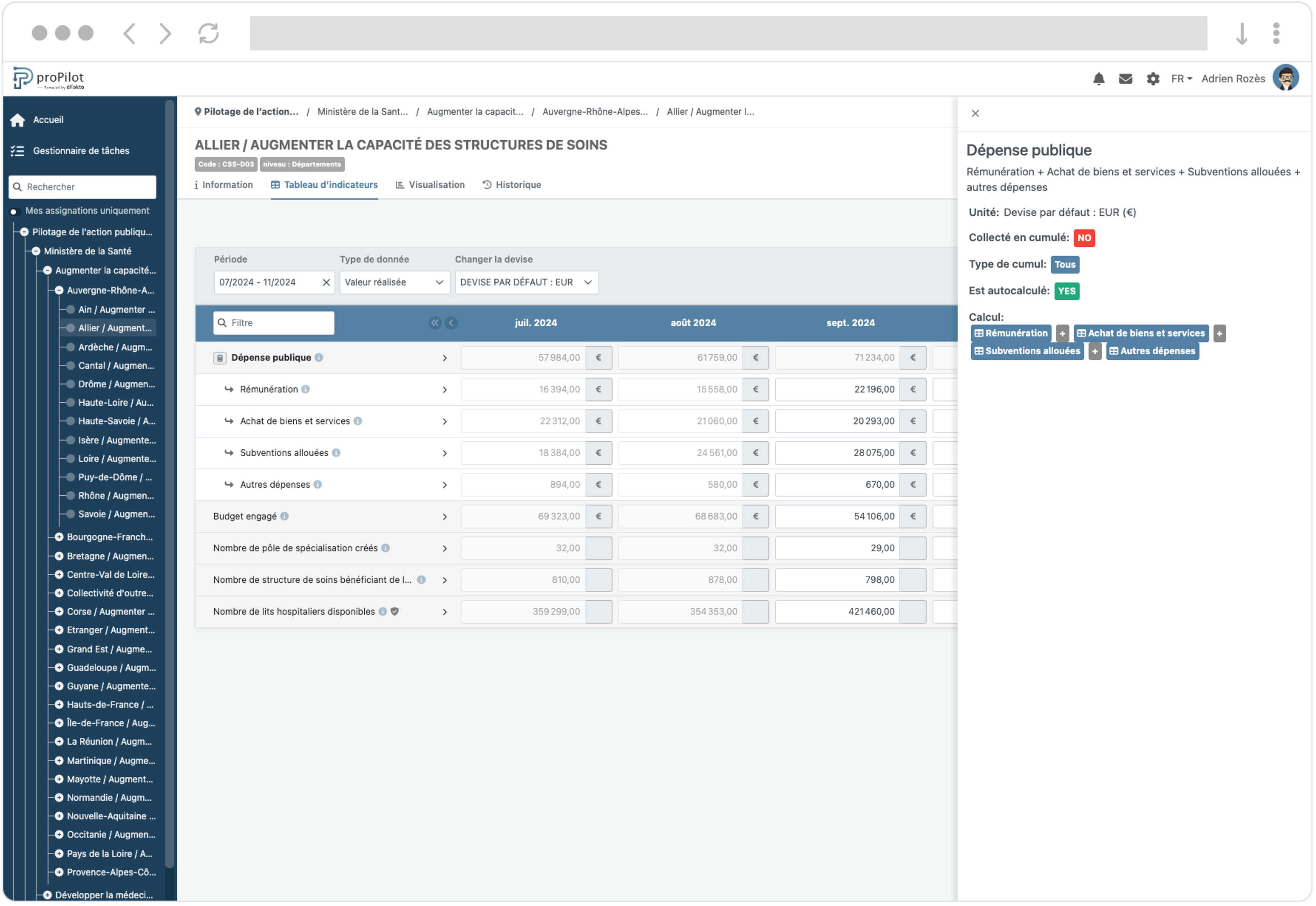 Les utilisateurs du tableau des indicateurs ont dorénavant accès aux informations descriptives et de gouvernance de la donnée pour chaque indicateur dans un panneau dédié.