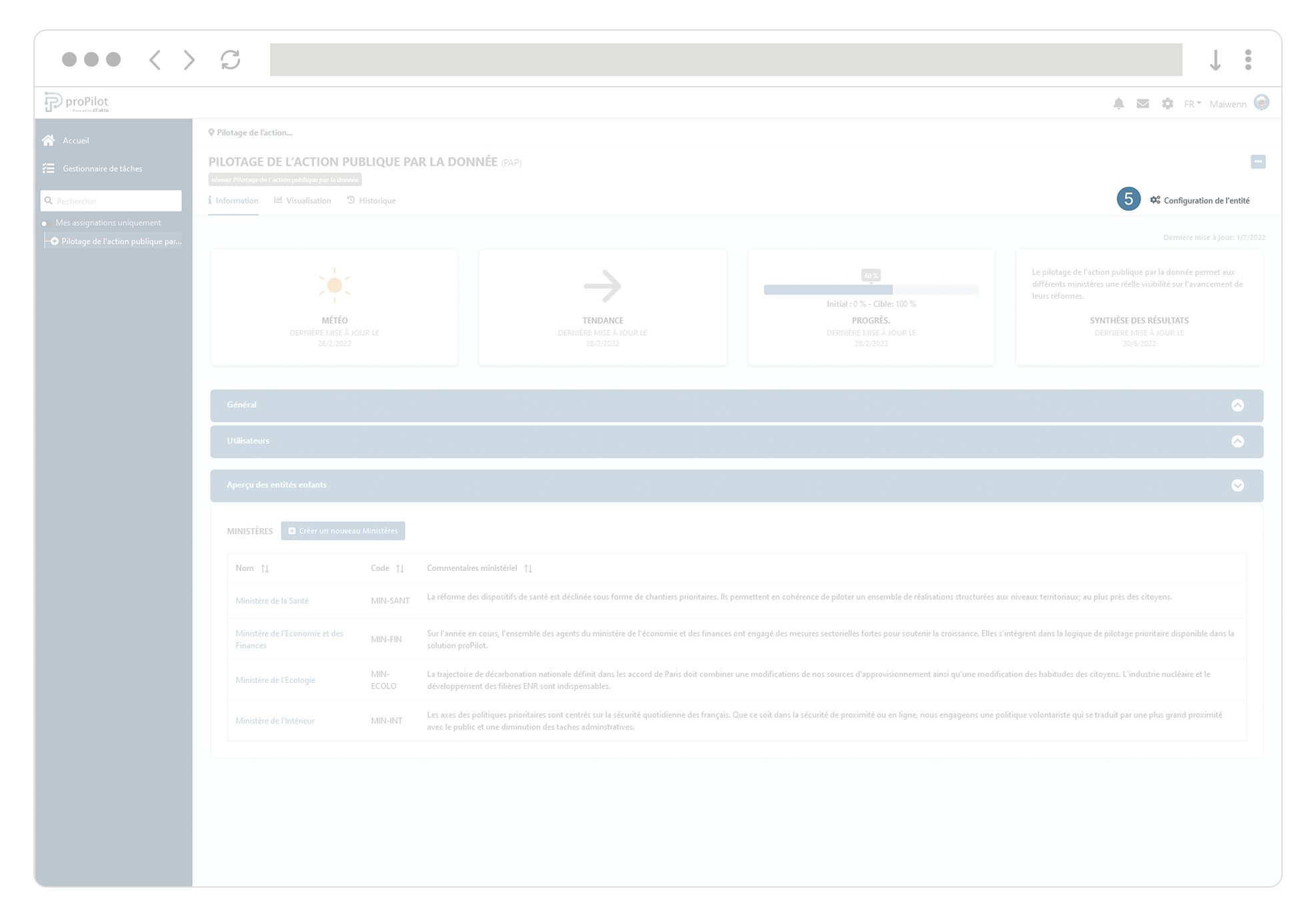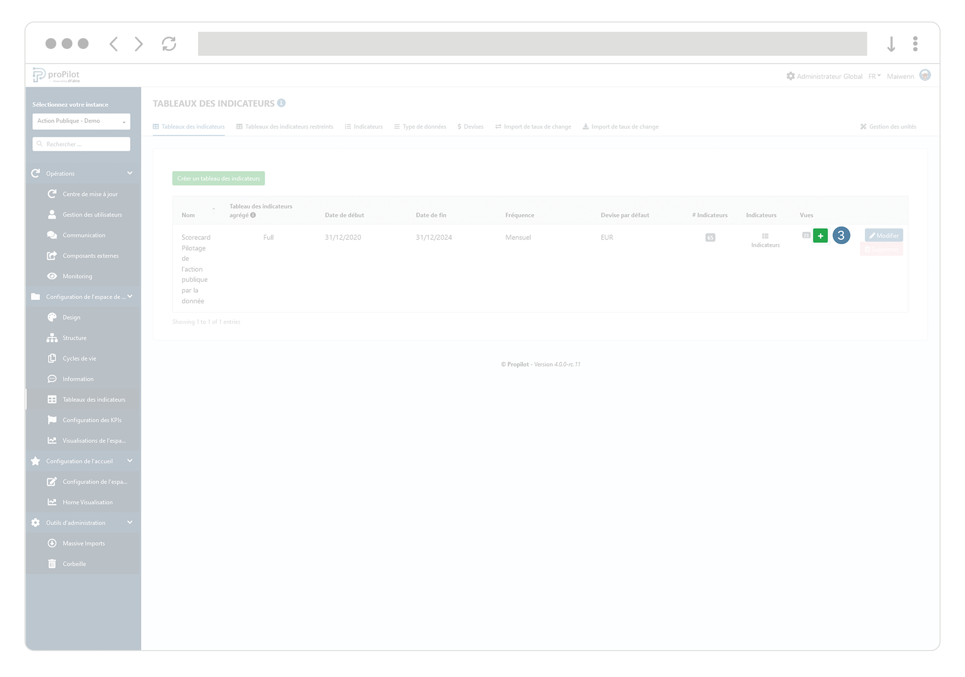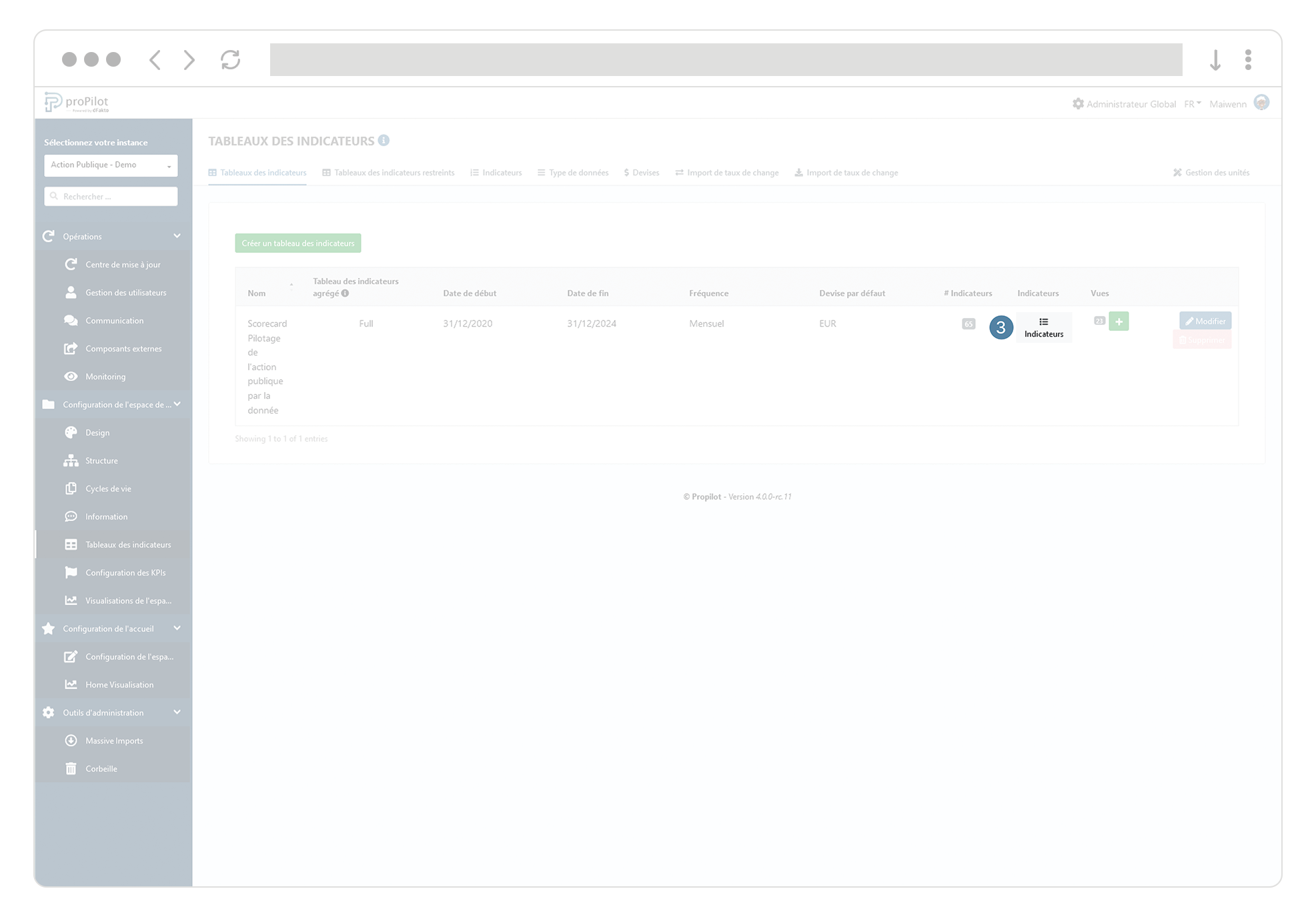 Cliquez sur le bouton “indicateurs” du tableau d’indicateurs que vous souhaitez mettre à jour.