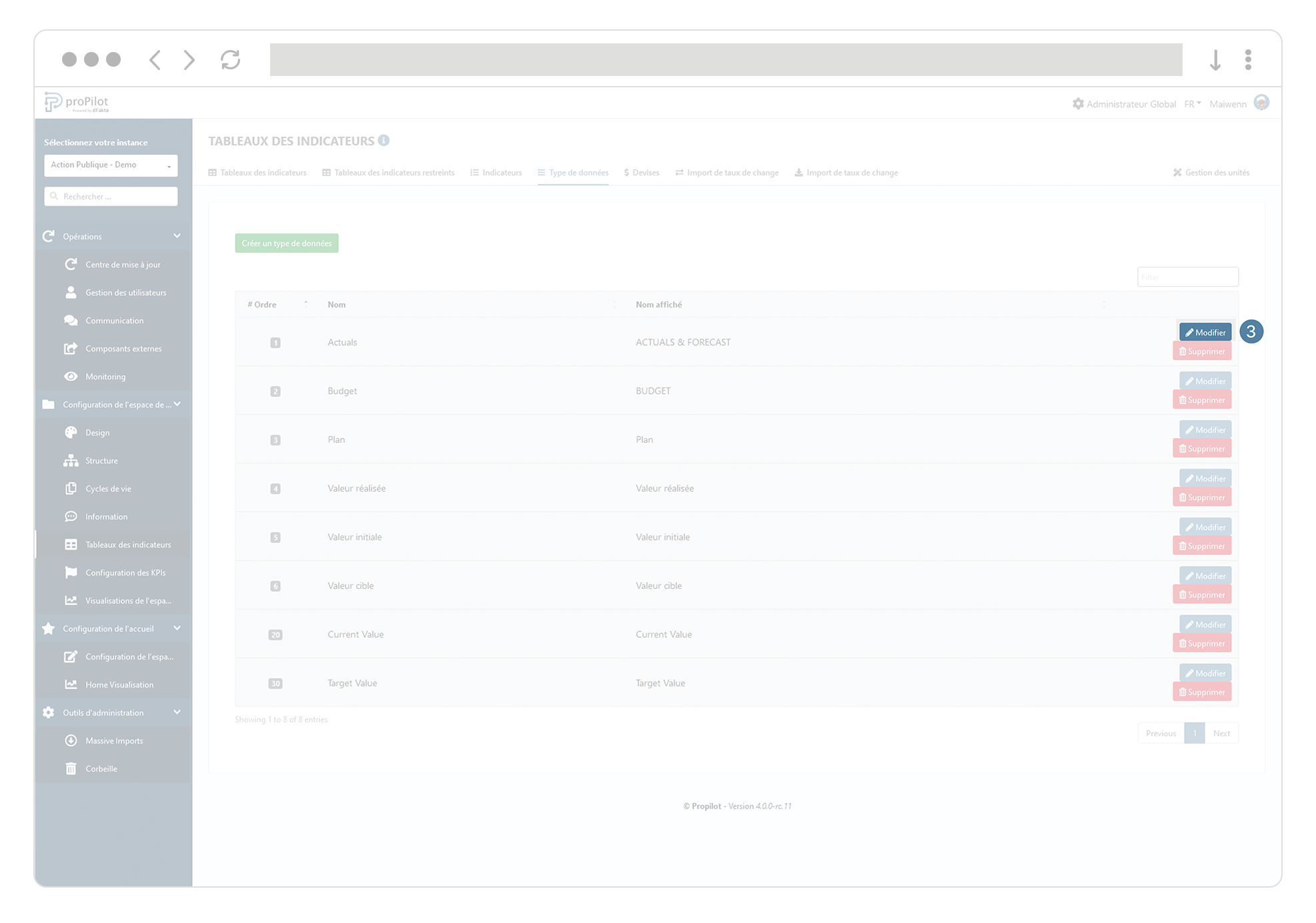 Cliquez sur le bouton “modifier” du type de données à modifier. Une fenêtre contextuelle s’ouvre.